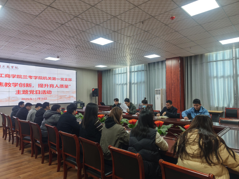 11月18日,郑州工商学院兰考学院机关第一党支部在24号楼105会议室开展“聚焦教学创新,提升育人质量”主题党日活动。活动旨在引导党员立足岗位,支持教学改革,服务育人中心工作。